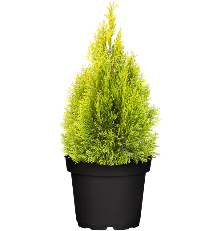 Lebensbaum 'Golden Smaragd'® ist ein kegelförmig und aufrecht wachsender Großstrauch. Er erreicht gewöhnlich eine Höhe von 3 - 5 m und wird ca. 1 - 1,5 m breit. In der Regel wächst er 20 - 40 cm pro Jahr.