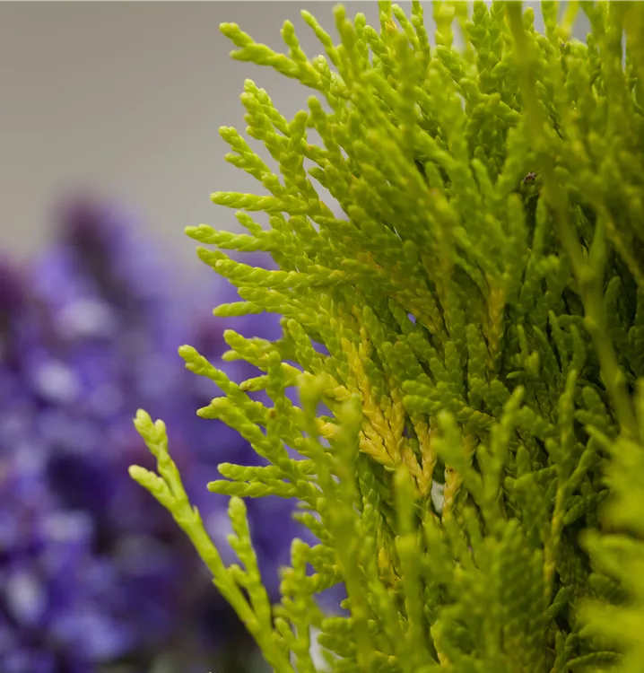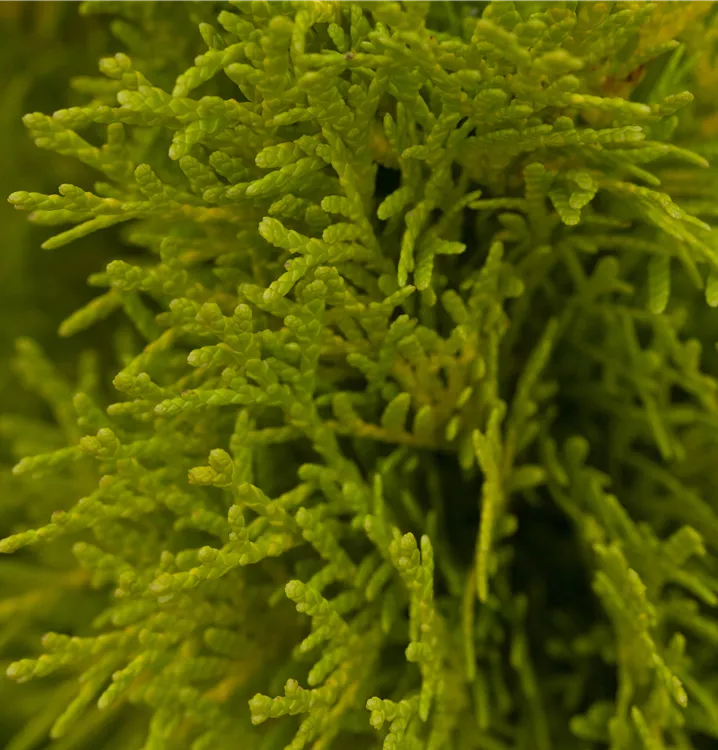 Der Lebensbaum 'Golden Smaragd'® ist immergrün. Seine Nadeln sind gelb-grün, schuppenförmig.