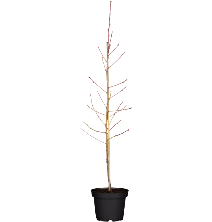 Säulennektarine 'Fantasia' ist ein aufrecht und säulenförmig wachsender Kleinbaum. Sie erreicht gewöhnlich eine Höhe von 3,5 - 4,5 m und wird ca. 30 - 50 cm breit.