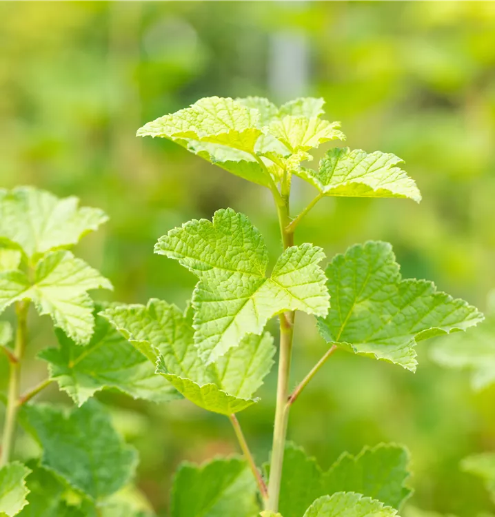Die sommergrünen Blätter der Johannisbeere 'Rovada' sind mittelgrün. Johannisbeere 'Rovada' zeigt sich leuchtend gelb im Herbst.