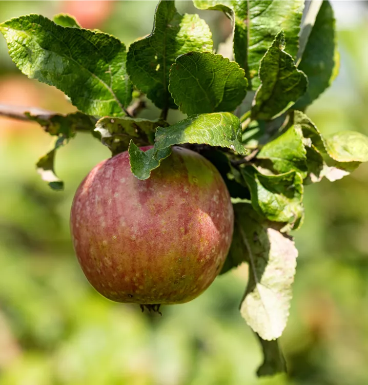 Der Winterapfel 'Gewürzluikenapfel' (Malus domestica) bildet rote, gelb-rote Früchte. Sie haben einen süß-säuerlichen Geschmack. Für eine ertragreiche Ernte ab Oktober schaffen durchlässiger, nährstoffreicher Boden und ein sonniger bis halbschattiger Standort optimale Bedingungen. Seine hellrosafarbenen Blüten sind eine schöne Erscheinung. Der Winterapfel 'Gewürzluikenapfel' wird mit seinem aufrechten und breiten Wuchs etwa 4,5 m hoch und 3,5 m breit.