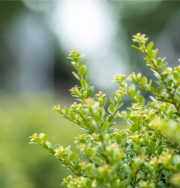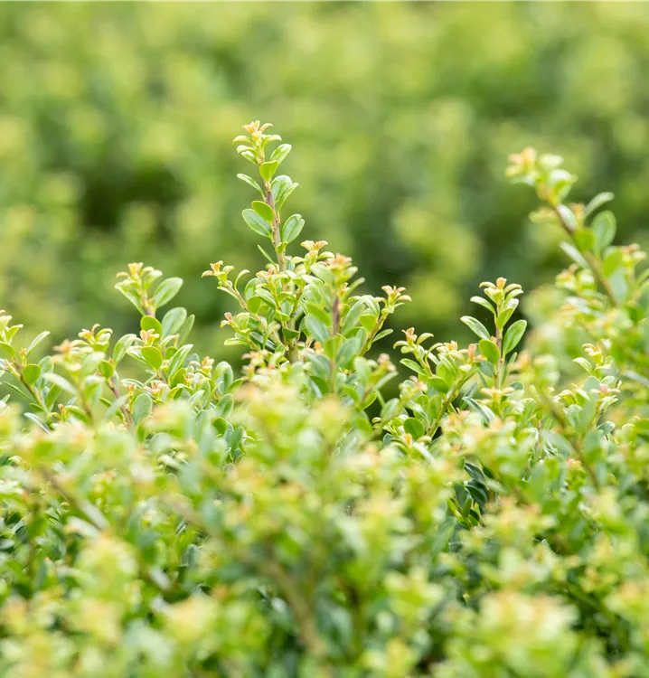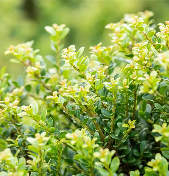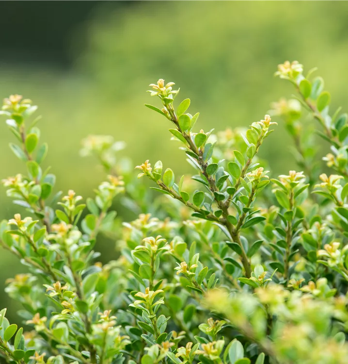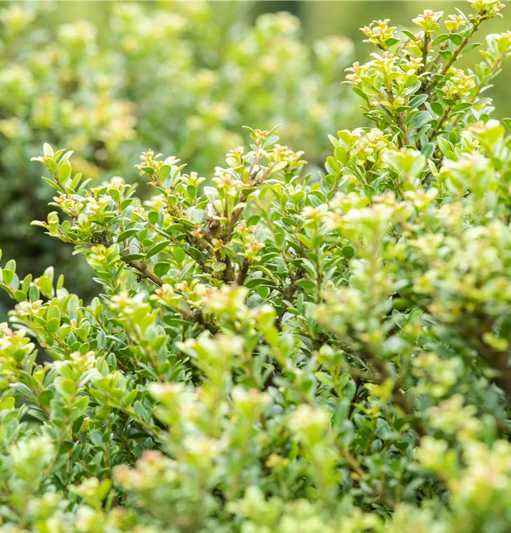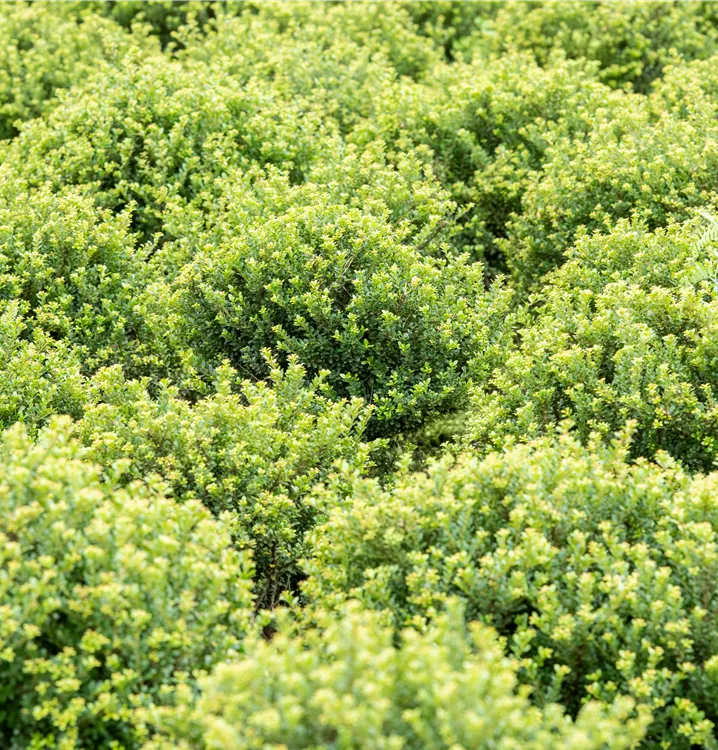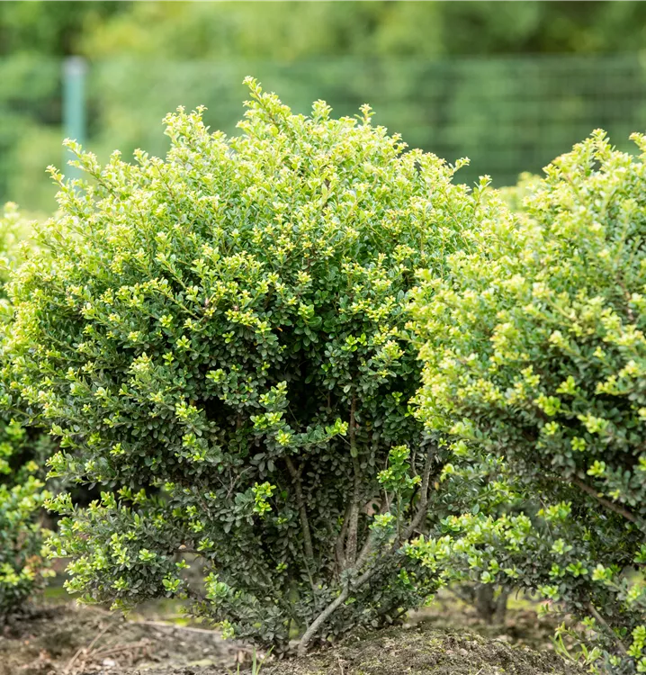 Der Berg-Ilex 'Glorie Dwarf' (Ilex crenata) ist ein gedrungener Strauch mit dekorativen, schwarzen Früchten, die sehr lange haften. Diesen voraus bringt er von Mai bis Juni cremeweiße Blüten hervor. Zudem trägt der Berg-Ilex 'Glorie Dwarf', mittelgrüne Blätter. An einem sonnigen bis halbschattigen Standort mit durchlässigem, lockerem, schwachsaurem Boden erreicht er gewöhnlich eine Höhe von ca. 50 cm und wird ca. 70 cm breit.