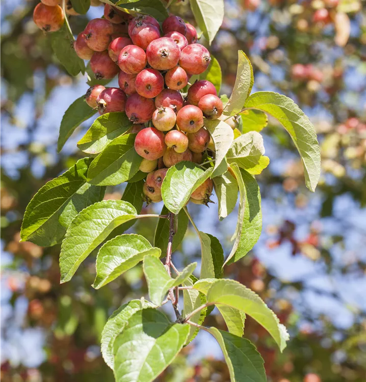 Besonders dekorativ sind die orange-roten, runden Früchte von Malus 'Evereste'®. Diese erscheinen ab August und sind klein.