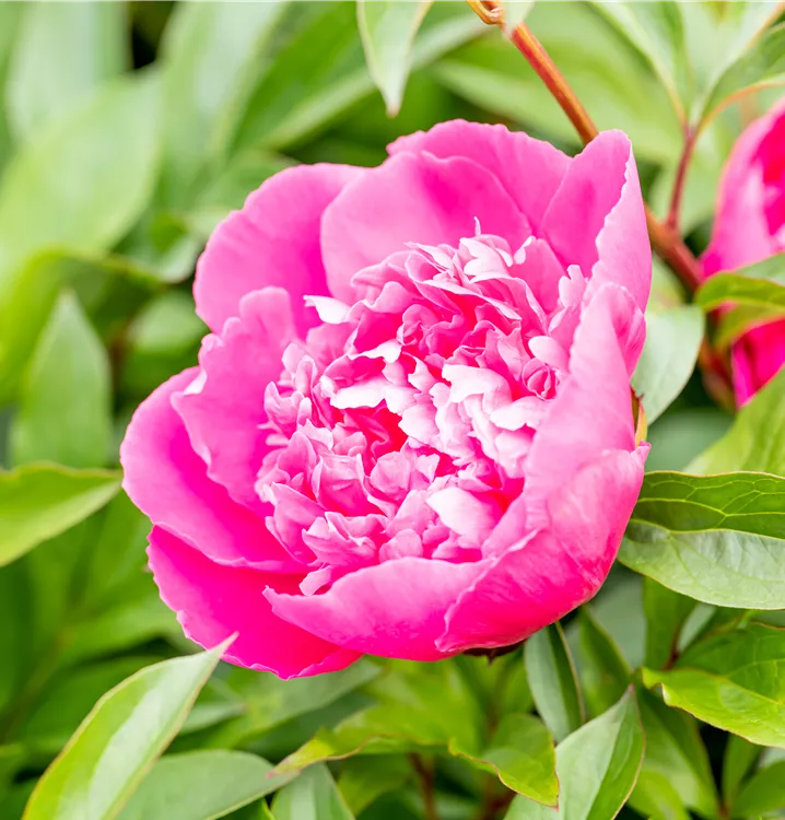 Paeonia lactiflora 'Amabilis' bildet starkgefüllte, schalenförmige, dunkelrosafarbene Blüten ab Mai. Diese verströmen einen angenehmen Duft und werden etwa 10 cm groß.