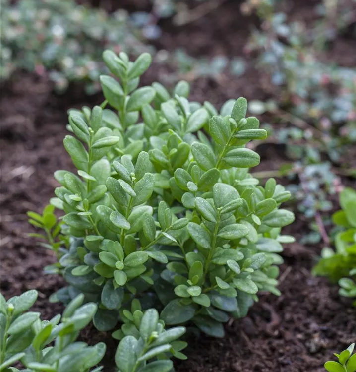Hoher Buchsbaum ist ein buschig, aufrecht und dicht wachsender Strauch. Er erreicht gewöhnlich eine Höhe von 2 - 8 m und wird ca. 2 - 6 m breit. In der Regel wächst er 10 - 20 cm pro Jahr.