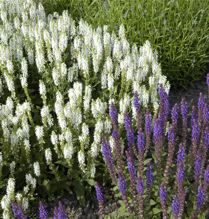 Salvia nemorosa 'Schneehügel' bildet lippenförmige, in Rispen angeordnete, weiße Blüten ab Juni. Diese verströmen einen angenehmen Duft. Bei richtiger Pflege Nachblüte im September.
