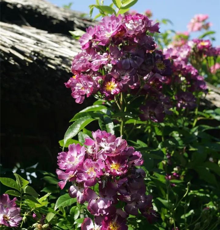 Die Kletterrose 'Veilchenblau' setzt schöne Akzente gemeinsam mit:
