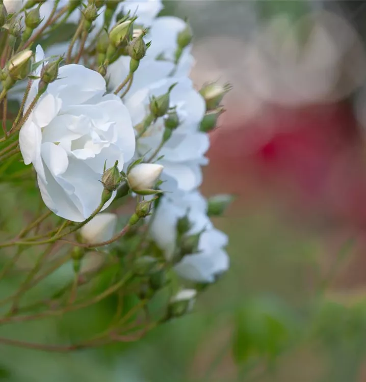 Die Triebe von Rosa 'Bobby James' sind bestachelt.