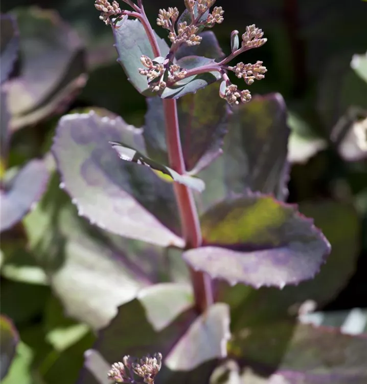 Die immergrünen Blätter des Großen Garten-Fettblatts 'Matrona' sind bronze, dickfleischig.