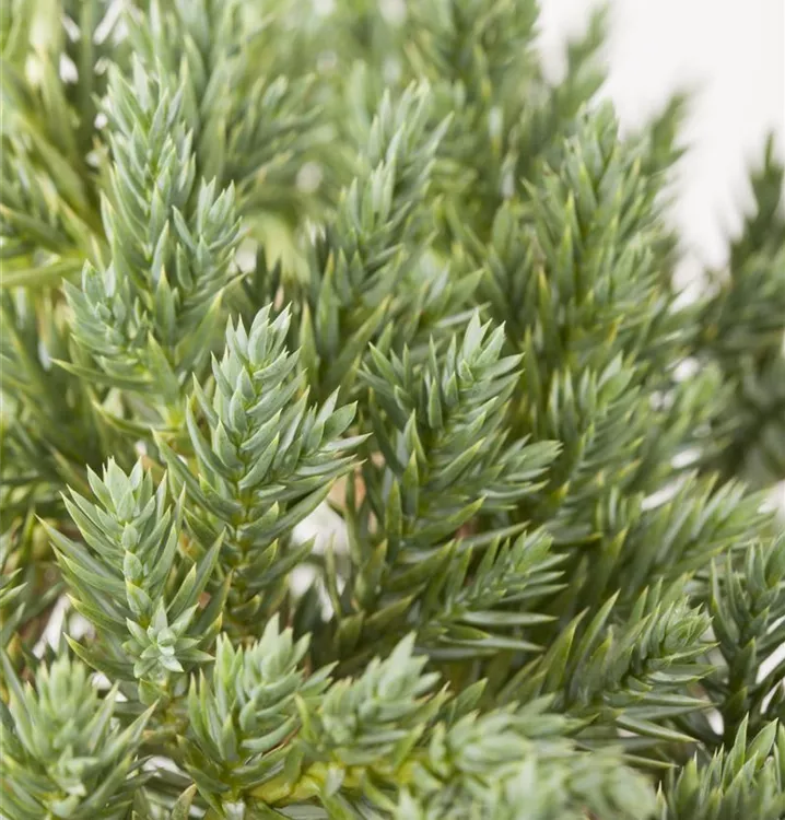 Der Blaue Zwerg-Wacholder 'Blue Star' ist immergrün. Seine Nadeln sind silberblau, stechend, schuppenförmig.