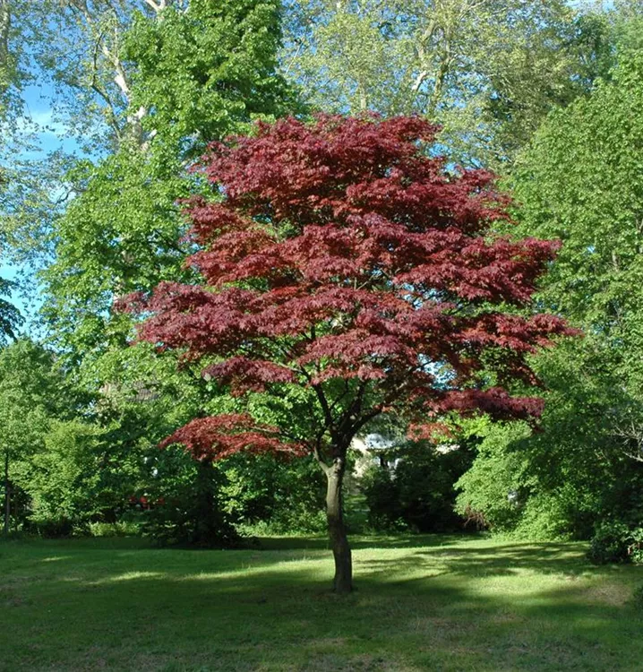 Acer palmatum 'Atropurpureum' ist ein Flachwurzler und bildet, je nach Boden, fein verzweigte Wurzeln.