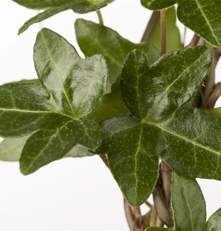 Die immergrünen Blätter des Gemeinen Efeus sind dunkelgrün, herzförmig, ledrig, wechselständig, gelappt. Diese sind etwa 5 - 12 cm groß.