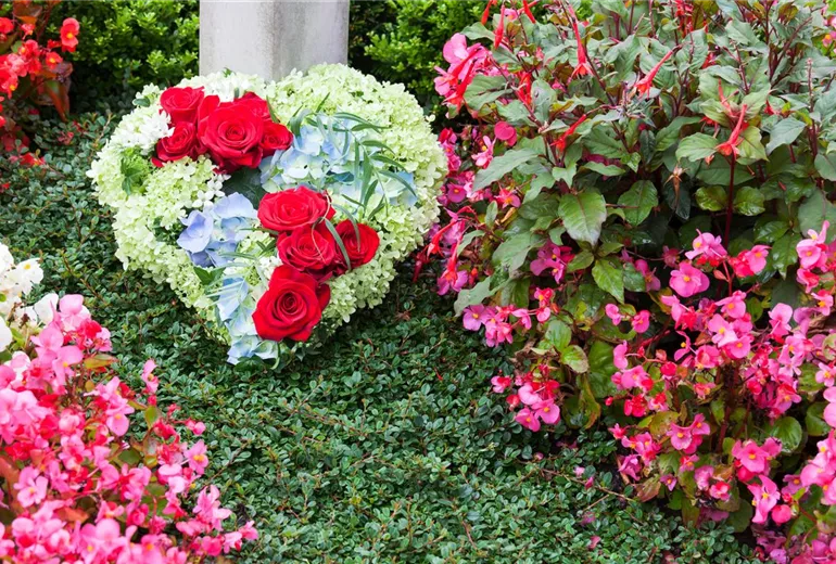 Fuchsia Wichtig ist, dass die Grabbepflanzung für den Sommer vor dem großen Hitzeeinbruch erfolgt. Nur dann haben die Pflanzen noch genug Zeit, sich tief einzuwurzeln und damit resistent gegen die anhaltende Hitze zu werden. Generell ist besonders im Sommer regelmäßiges Gießen und Düngen auf dem Grab notwendig, damit die Blumen prächtig und gesund wachsen. Ein Grab sollte aber niemals eine Belastung für die Hinterbliebenen sein, sondern die Möglichkeit, den Verstorbene nahe zu sein und an sie zu denken. Deshalb sollte man auf eine sehr pflegeleichte Grabbepflanzung zurückgreifen, die nicht viel Arbeit macht. Mehrjährige Pflanzen verringern die Pflanzarbeiten und Bodendecker reduzieren das Unkraut auf dem Grab. Blühende Pflanzen geben dem Grab dann eine saisonale Note.