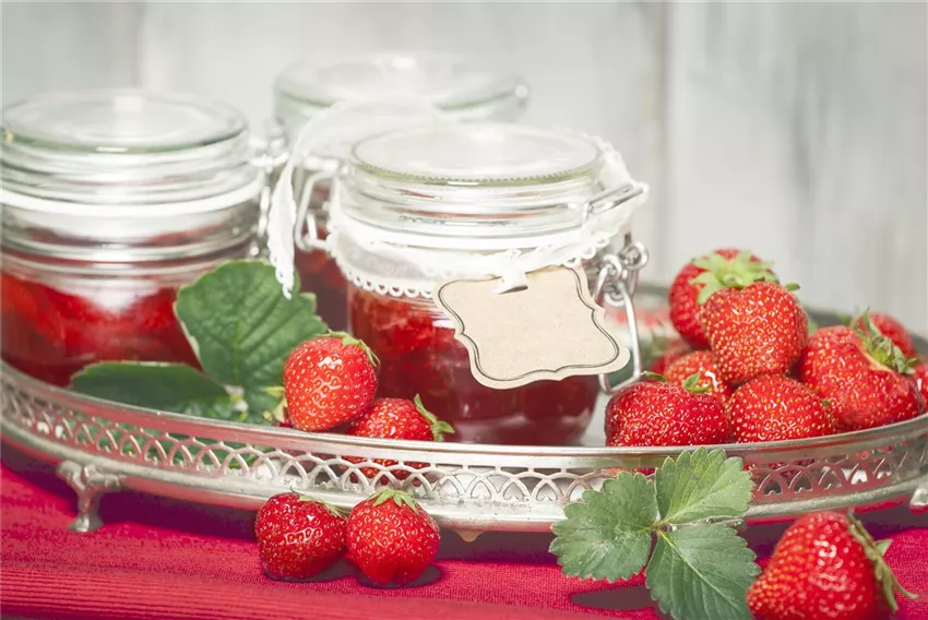 Fragaria x ananassa Was für einen Spaß macht es, wenn man die Früchte seiner Arbeit ernten kann! Deshalb bringt es dem Gartenbesitzer so viel Freude, wenn er die Früchte und Beeren vom Strauch oder vom Baum pflückt, in den Mund steckt und genießt! Aber soll es wirklich bei diesem kurzfristigen Genuss bleiben? Natürlich nicht, sagen viele, denn man verarbeitet ja einen guten Teil in leckeren Desserts und schmackhaftem Kuchen. Doch auch das muss noch nicht alles sein. Machen Sie sich doch die wirklich geringe Mühe und verwandeln Sie Ihre frischen Kostbarkeiten in einen langfristigen Hochgenuss. Denn was kann es Schöneres zum Frühstück geben als selbst gemachte Marmelade?