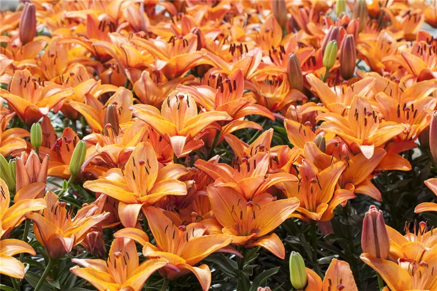 Lilium Lilien sind wundervolle Kombinationspartner im Beet. Neben Rosen und Stauden wirken sie sehr elegant. Damit sich die Blüten zur richtigen Zeit öffnen, sollten Sie Lilien im Frühjahr pflanzen.